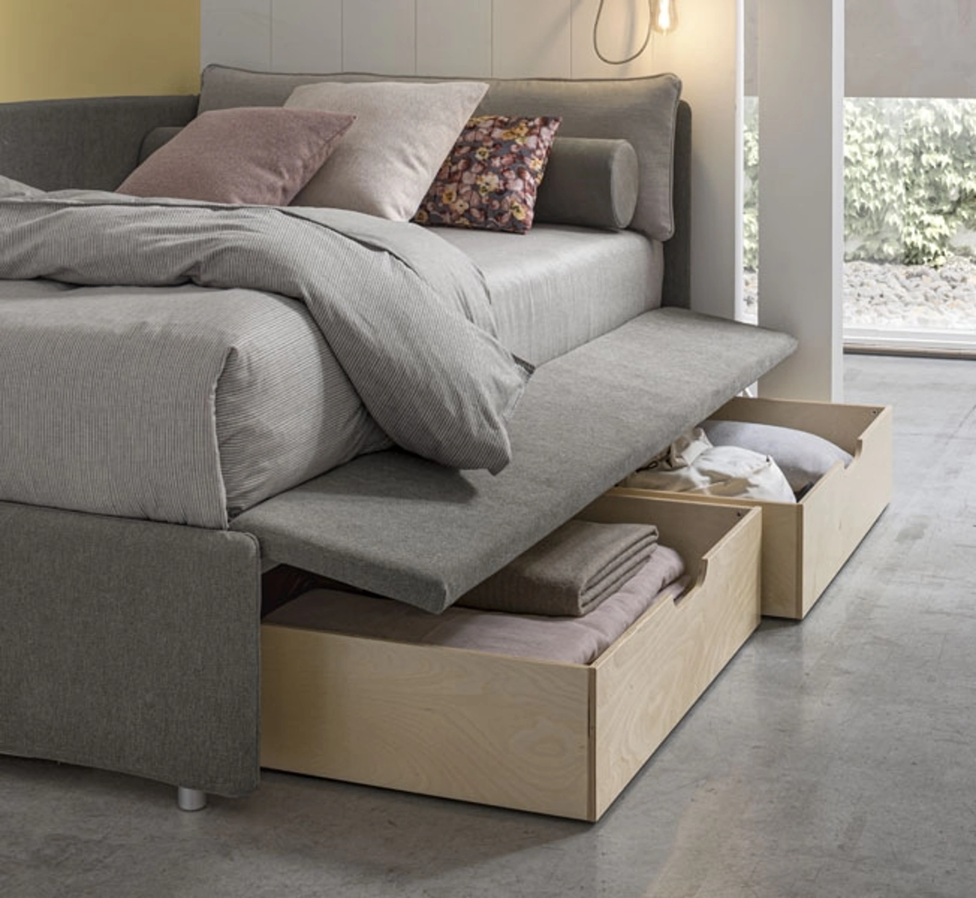 Una ricca gamma di letti moderni in tessuto ti aspetta: il brand V&Nice propone molteplici versioni di letto, che rispondono sempre alle esigenze dei bimbi. Materiali durevoli e pitture atossiche caratterizzano le proposte della marca: se la stanza ha dimensioni non generose, sono diversificate le soluzioni disponibili, sempre capaci di abbinare ergonomia e sicurezza. Scopri di più sul Daybed Singolo con secondo letto estraibile o contenitore Joy Estraibile di V&Nice nell'immagine: è ideale per ricreare ottimamente un ambiente accogliente, bello e ben organizzato, ideale per i tuoi bambini. I Letti singoli con letto estraibile per la stanza dei più piccoli disponibili in negozio risolvono ogni difficoltà di spazio e funzionalità, assicurando allo stesso tempo uno stile unico.
