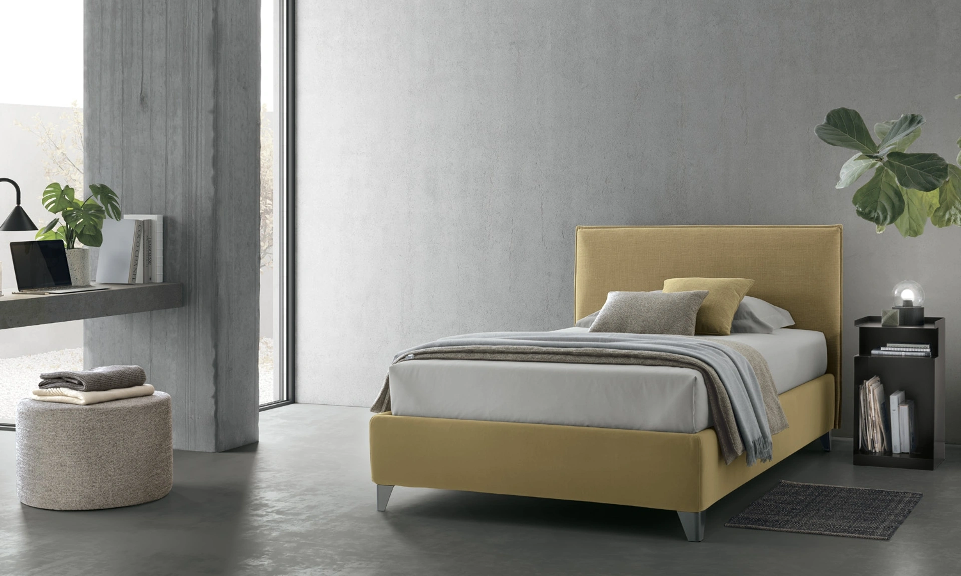 Se sei alla ricerca di letti singoli imbottiti, ecco qui il modello Mood in tessuto per impreziosire la stanza dei più piccoli.
