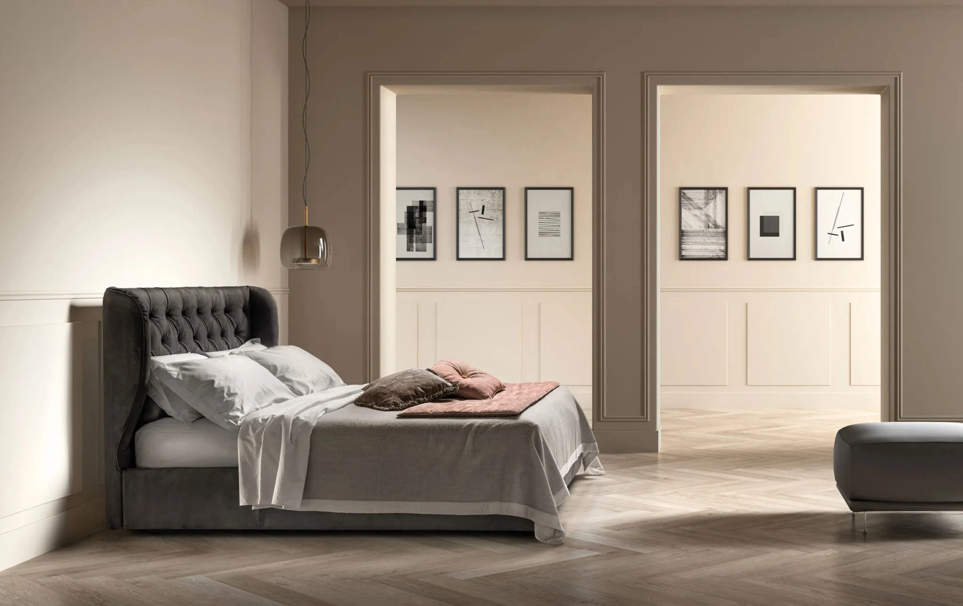 Il letto Gem in pelle, tra i modelli imbottiti matrimoniali moderni di Bside, è pensato per garantirti il riposo migliore.